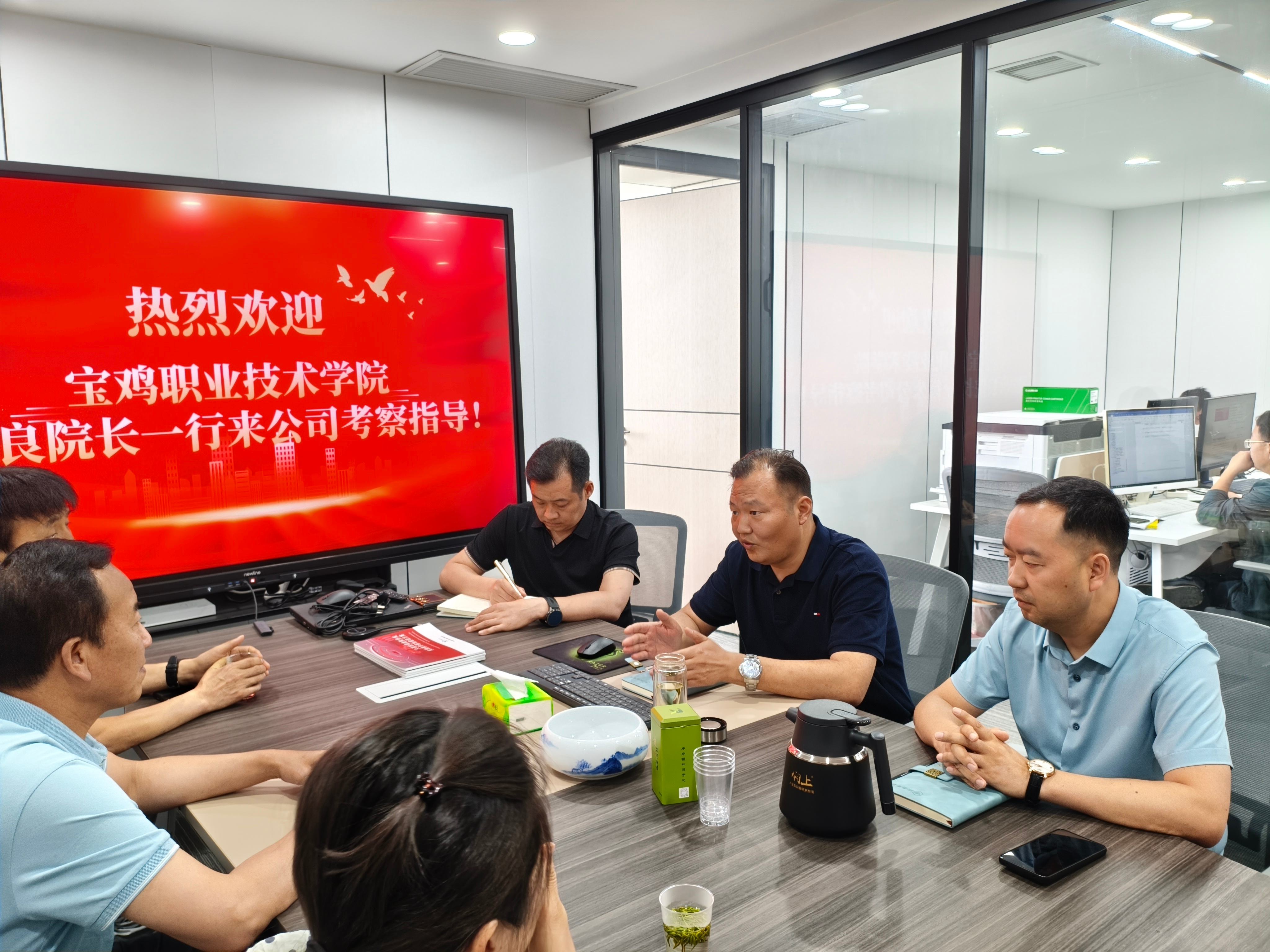 在访企拓岗交流环节,张院长详细了解了我司的业务范畴、人才需求结构以及未来发展规划。他指出,宝鸡职业技术学院始终致力于为学生创造更多优质的就业机会,通过访企拓岗,能精准对接企业需求,调整学院人才培养方向,实现人才培养与企业需求的无缝衔接。双方围绕如何深化校企合作模式、拓展实习与就业岗位、共建人才培养基地等方面进行了热烈讨论,并达成初步合作意向。未来,学院与企业将加强互动,联合开展实训课程等多元化合作路径,为学生提供更多实践机会,助力其顺利步入职场。