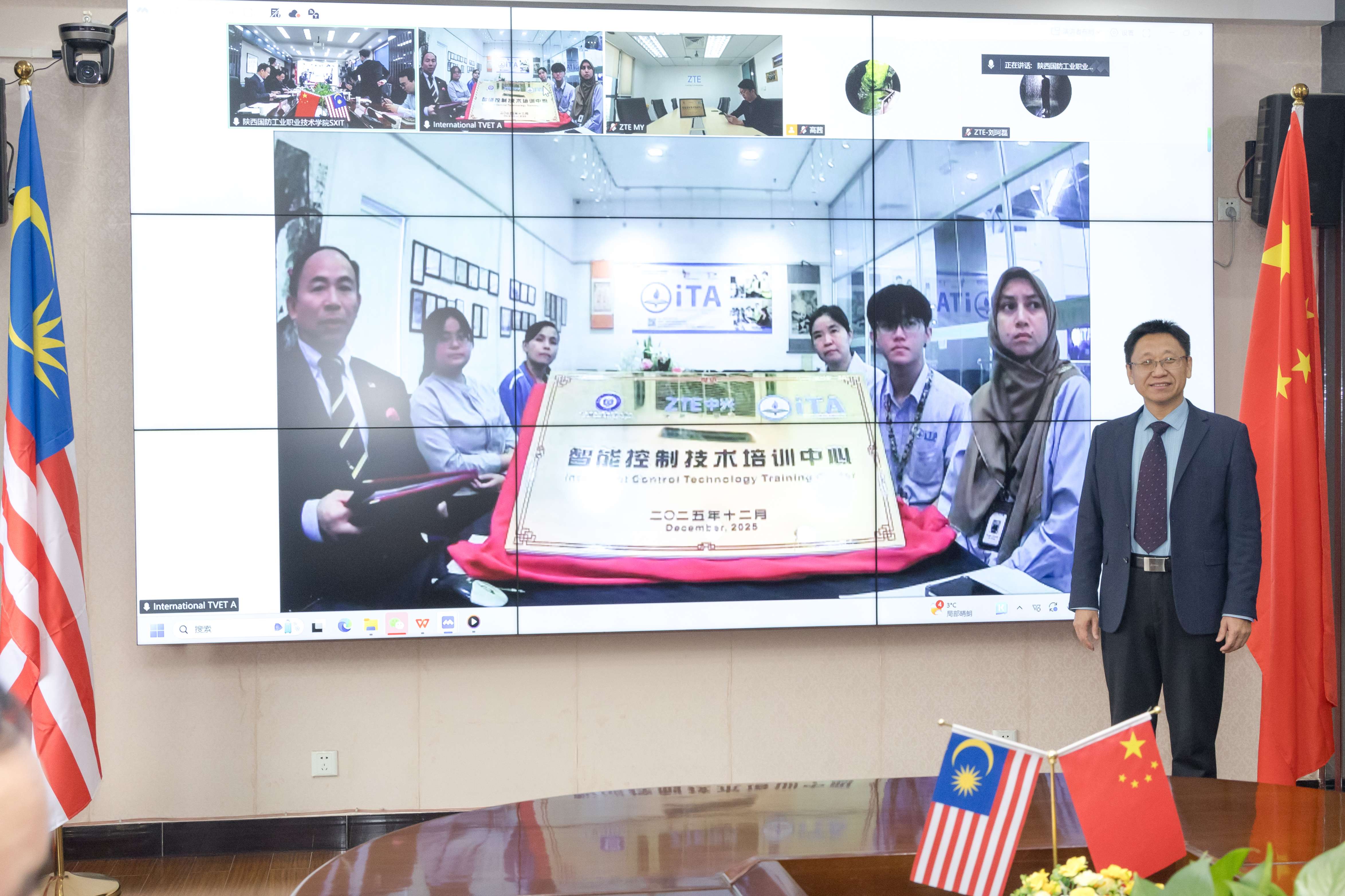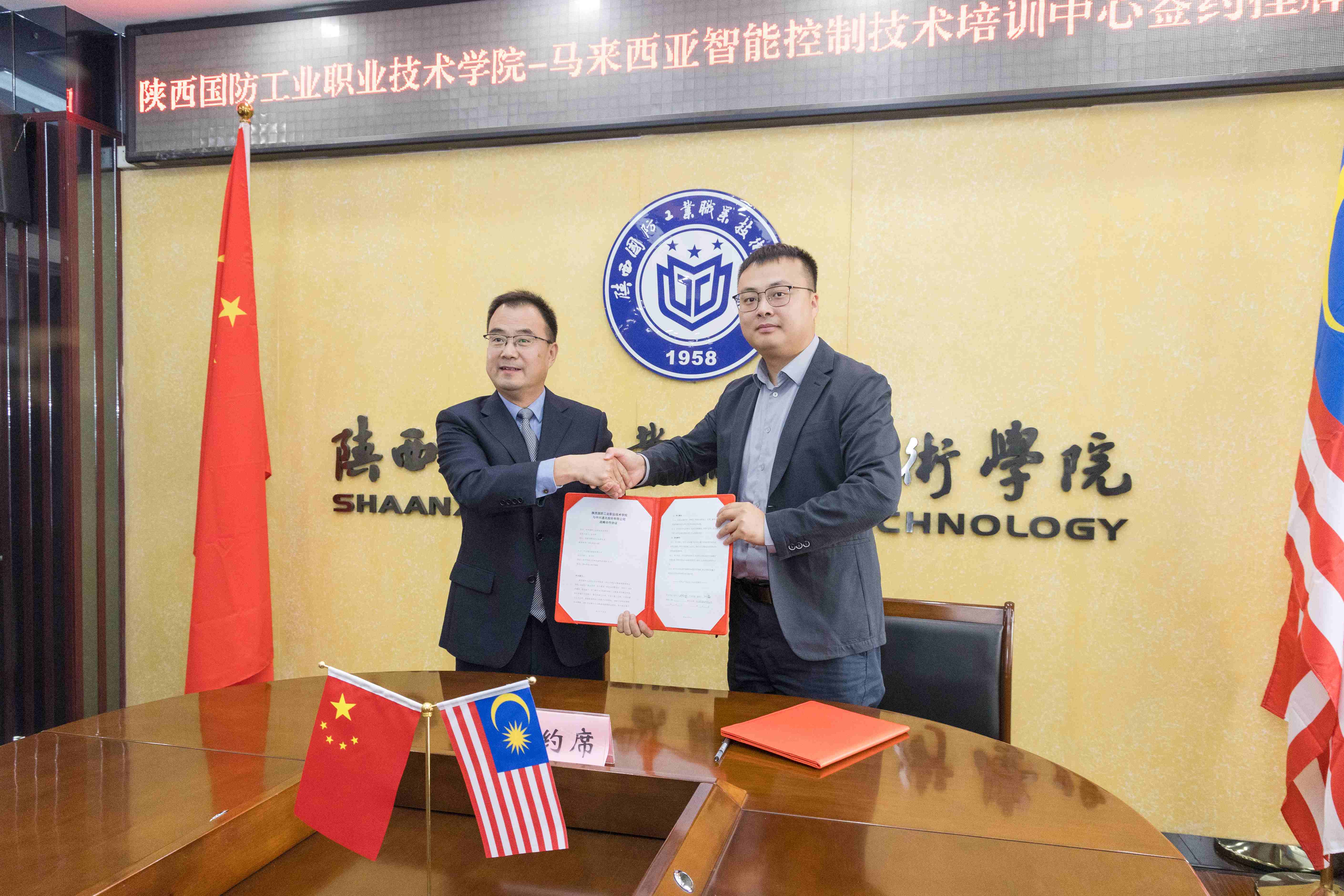 为贯彻国家 “一带一路” 倡议与教育部 “职教出海” 方针,创新职业教育国际化产教融合模式,12 月 9 日,由我司全程协助筹备的陕西国防工业职业技术学院(以下简称 “陕西国防职院”)中马国际教育合作交流会暨 “马来西亚智能控制技术培训中心” 签约挂牌仪式圆满举行。