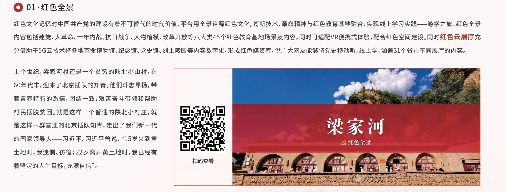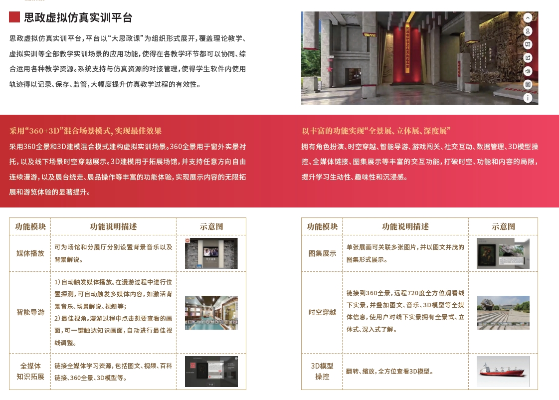 实现思政实践活动从线下到线上的转变,红色景点线上参观使用当前最新虚拟仿真VR技术,将红色景点与VR技术有效结合,实现了真实景点在线沉浸式体验参观。